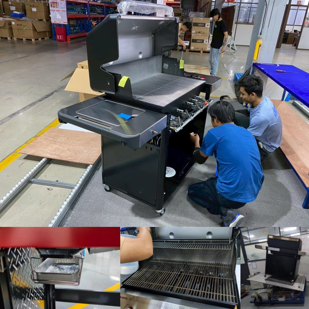 - Hole alignment: Pre-drilled holes on side shelves, burner box, and cart must match without forcing.